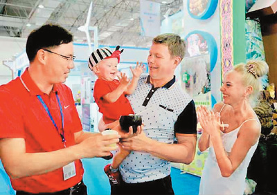外国游客在海南国际旅游贸易博览会上。 |