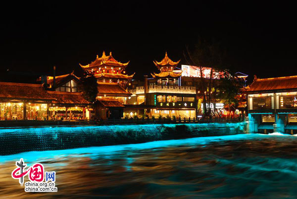 榈庭多落叶,慨然知已秋。都江堰这个城,她静静的沉思着,将千年来的沉淀散发出来,带着浓浓的芬芳;岷江水欢快的奔流着,穿过南桥,流向天府之国核心…,河水流过之处,金黄的银杏任风摆动,火红的灯笼随风摇曳。此时此刻,您定能体会到秋色中这座城市的另一番魅力和柔情:古香古色的建筑在秋风下摇曳,灯火在小桥流水之间辗转,在或明或暗之间,在如诗如歌之间,我来了,这座美丽的古城……