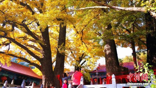 银杏树是中国独有的冰川纪孑遗植物,被称为“活化石”。因生长、结果缓慢,常常是“公”植树而“孙”得利,因而民间又称银杏树为“公孙树”。目前,文殊寺内的银杏树进入最佳观赏期,吸引不少游客慕名前来一睹古树风采。韩章云 摄
