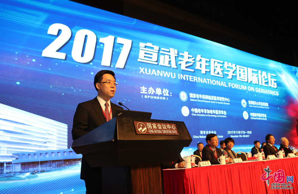 中国网11月21日讯(记者 佟静)11月18日,由国家老年疾病临床医学研究中心和首都医科大学宣武医院等单位共同主办的2017宣武老年医学国际论坛在国家会议中心举行。来自国家科技部、国家卫生计生委、北京市医院管理局、首都医科大学等单位领导出席论坛开幕式。国内外专家学者在论坛上就我国人口老龄化现状及发展等问题展开交流,探索老年医学协同创新体系新方向,推广成功经验和先进模式,推动老龄事业发展。首都医科大学宣武医院党委书记张国君主持开幕式。