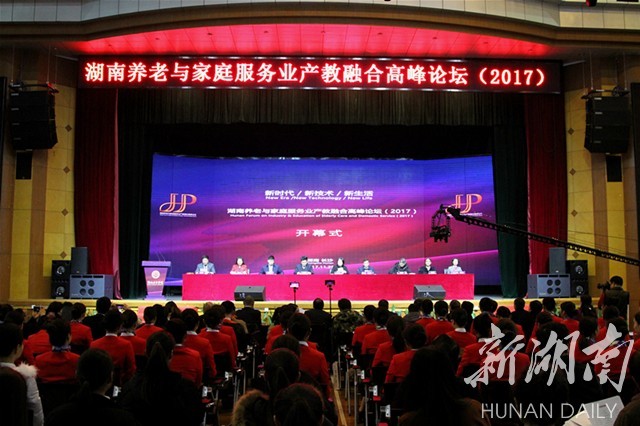 新湖南客户端11月25日讯(记者 彭可心 通讯员 周少四 刘遵仁)你是不是还认为,养老家庭服务业就是洗衣做饭这类保姆干的活?其实,随着社会发展,这个行业的服务内容已经在不断转型升级,一线高端人才奇缺。今日,湖南养老与家庭服务业产教融合高峰论坛(2017)在湖南女子学院举办。来自海内外的专家学者、业界同仁、千余在校大学生等,围绕“养老”这一焦点话题,进行了深入探讨。