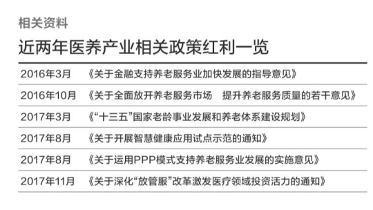 如何实现老有所医、老有所养,关系到上亿老年人如何安享晚年。十九大报告提出“人民健康是民族昌盛和国家富强的重要标志”,提出实施健康中国战略。在此背景下,国家卫计委出台《关于深化“放管服”改革激发医疗领域投资活力的通知》,提出取消养老机构内设诊所的审批,实行备案制。随后,这则通知进一步细化。国家卫计委又在本月正式发布了关于养老机构内部设置医疗机构取消行政审批实行备案管理的通知,养老机构内部设置诊所、卫生所(室)、医务室、护理站,取消行政审批,实行备案管理。