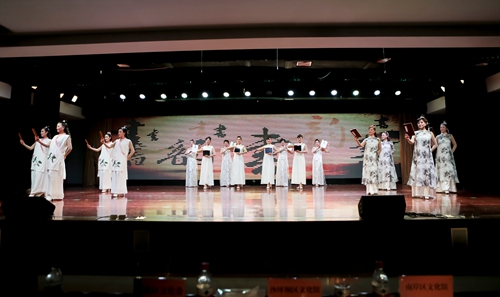 江北区文化馆艺术团新创作舞蹈《迈向新时代》、获奖合唱《康定情歌》《思念》,大渡口区文化馆志愿团队舞蹈《吉祥酒盅》,九龙坡老干部艺术团创作舞蹈《火红的辣椒》,沙坪坝区文化馆群星舞蹈团《采薇舞》,南岸区文化馆中老年艺术大学艺术团合唱《鼓浪屿之波》,北碚区文化馆缙云霓裳时装队时装秀《书韵流芳》,渝北区文化馆艺术团创作舞蹈《托起明天的辉煌》,巴南区文化馆星光舞蹈团创作舞蹈《栀子花儿顺墙栽》等文艺节目依次呈现,活动在《共圆中国梦》的激昂扬旋律中落下帷幕。演员们用文艺形式传递党的十九大会议精神、用优美的舞姿演绎对美好生活的向往、用悠扬的歌声吟唱新时代的乐章,精彩的节目让现场高潮迭起、掌声不断,观众们大呼过瘾。