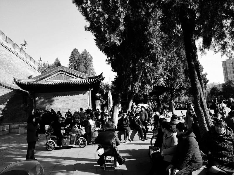 老年人在环城公园里吼秦腔消遣
