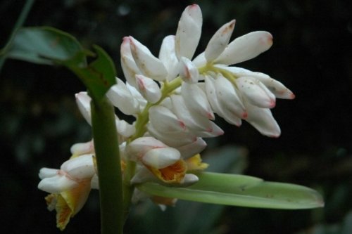 白里带有橙红色彩的月桃花。